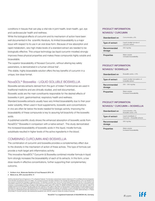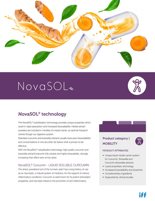 NovaSOL®’un misel yapıda çözündürme teknolojisi, kurkumine hızlı absorpsiyon ve yüksek biyoyararlanım ile sonuçlanan benzersiz özellikler verir.